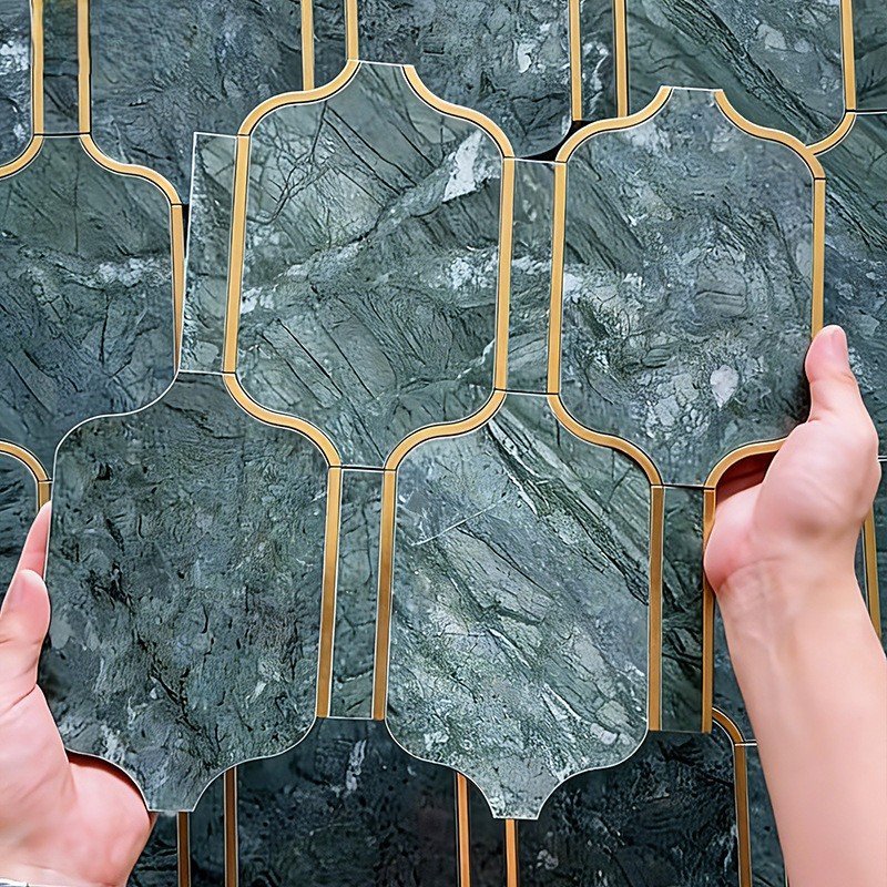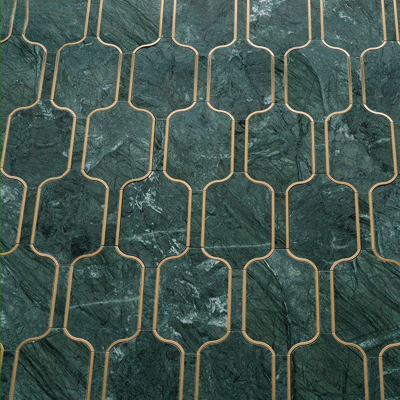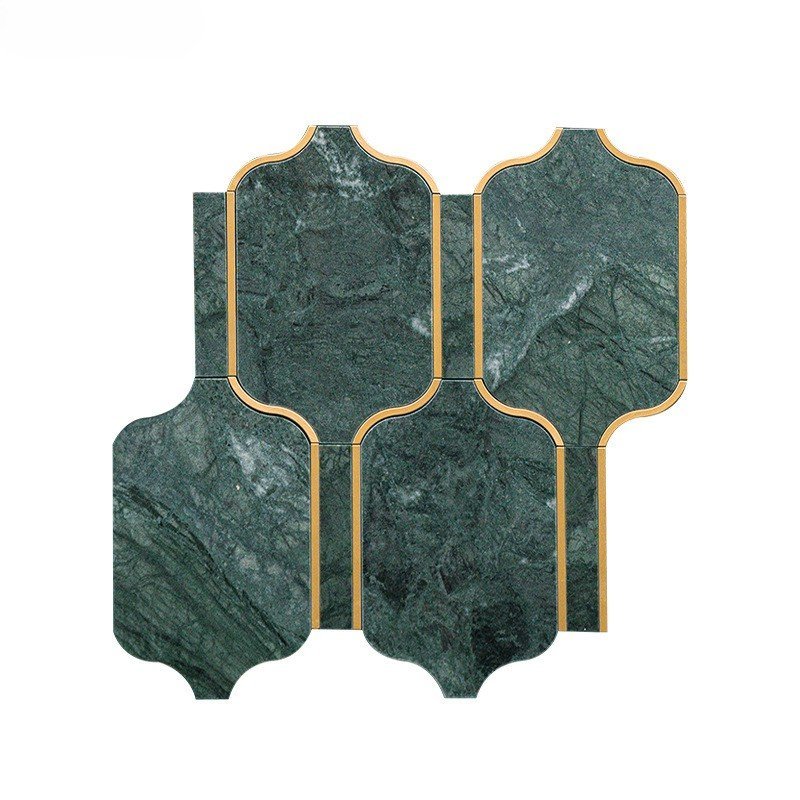 Dark Green Lantern Shape Marble Mosaic Tile 300x300mm Luxury Vintage Bathroom Tile