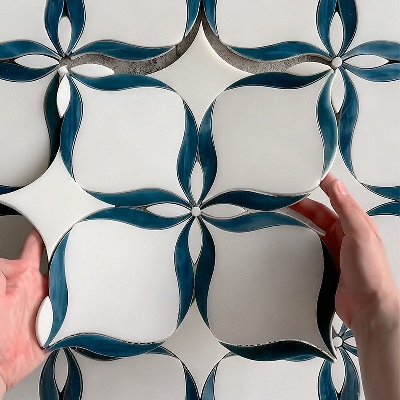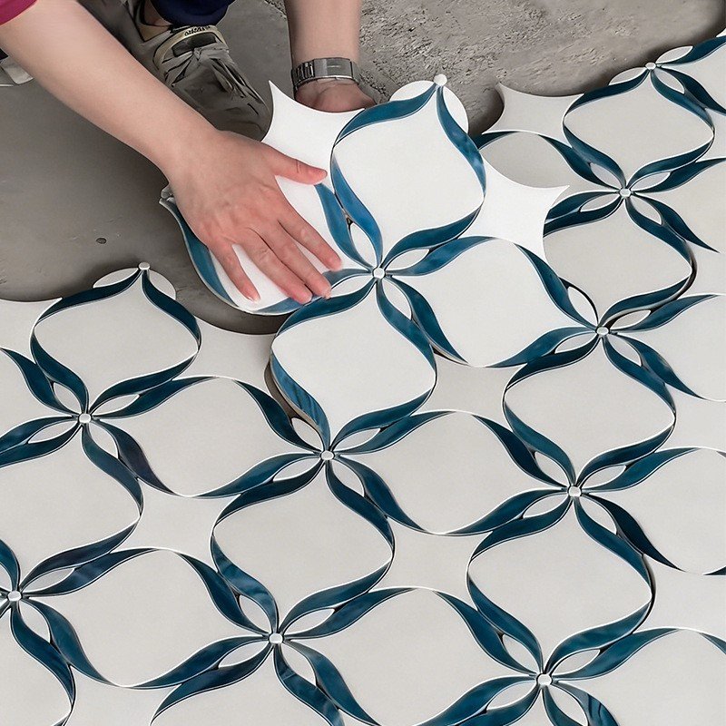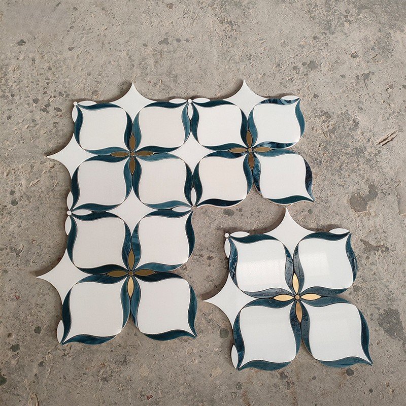 Luxury Four-Leaf Mosaic Tile with Gold & Blue Accents for Bathroom & Accent Wall