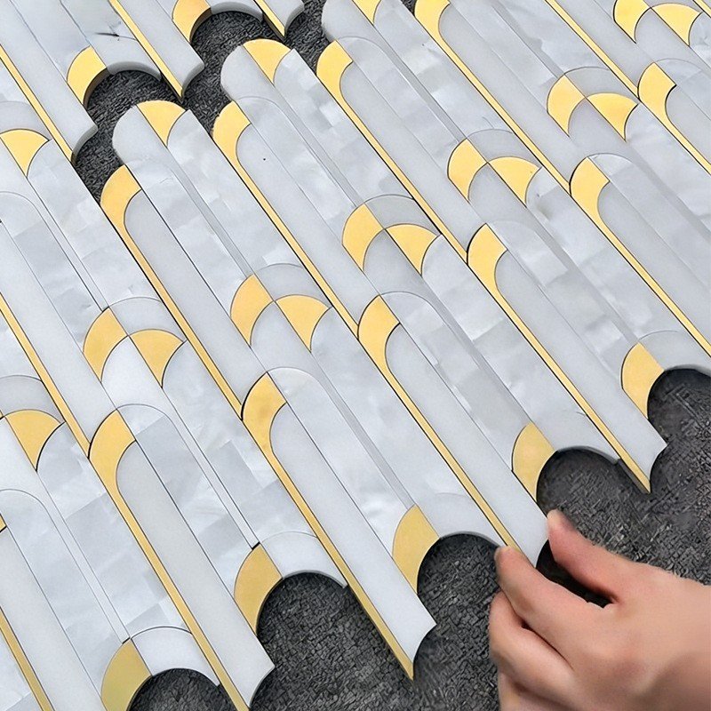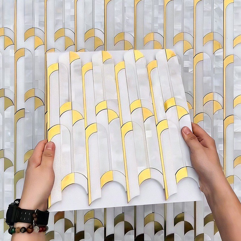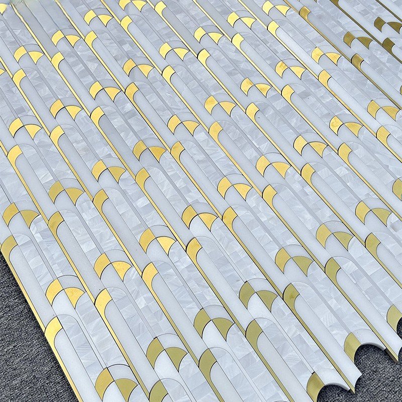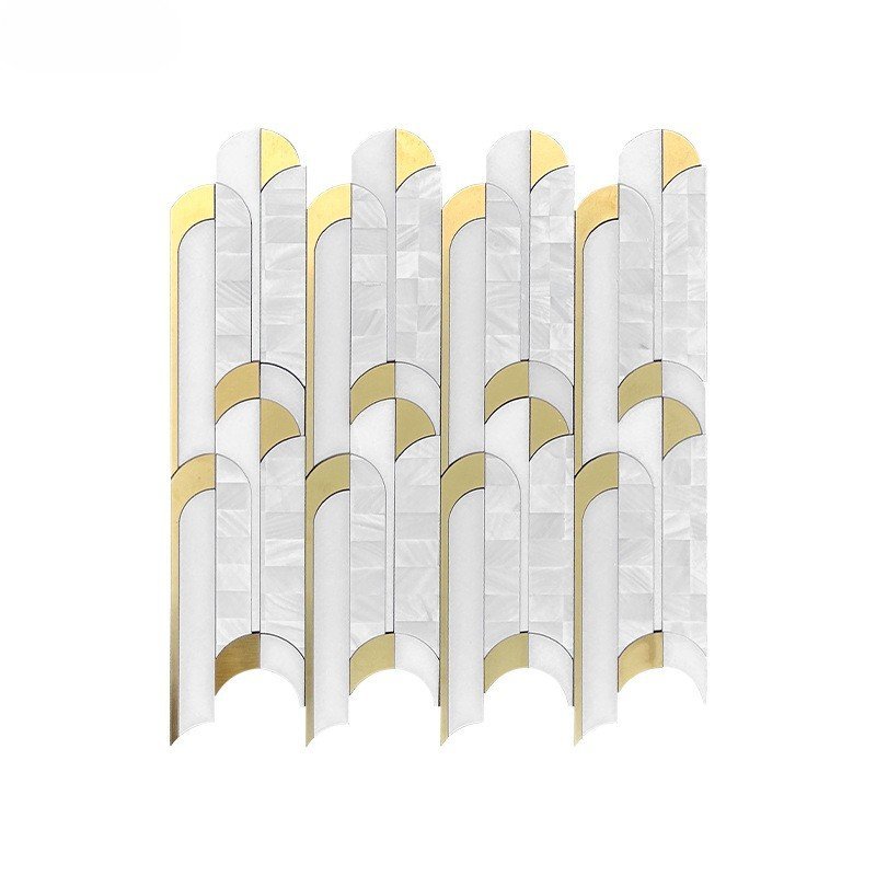 Luxury Mother of Pearl & Gold Metal Mosaic Tile 292x300mm Modern Minimalist Accent Wall Tile