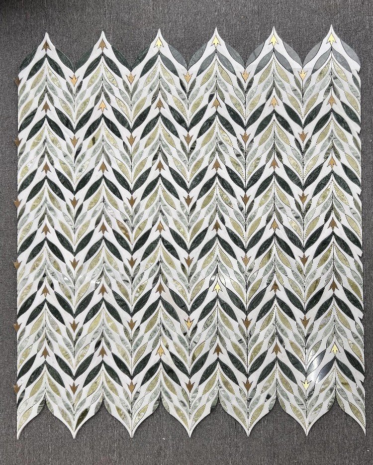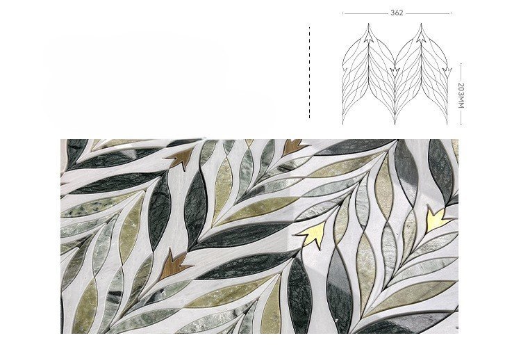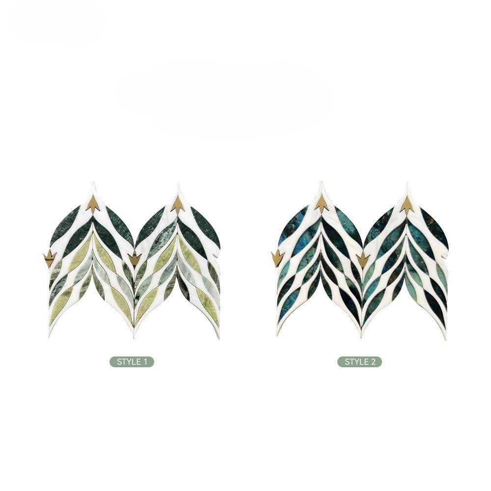 Natural Leaf Pattern Marble Mosaic Tile 203x362mm Luxury Green Plant Accent Wall Tile
